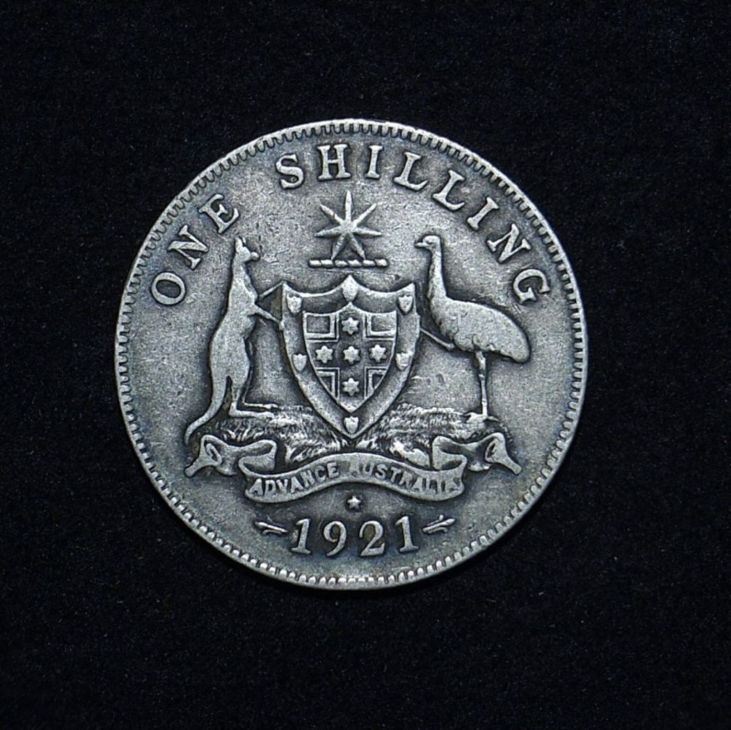 As it happened, Aussie coins remained on the sterling silver standard up until 1945 and the ’21 shilling became the only one to ever have a star on one side.