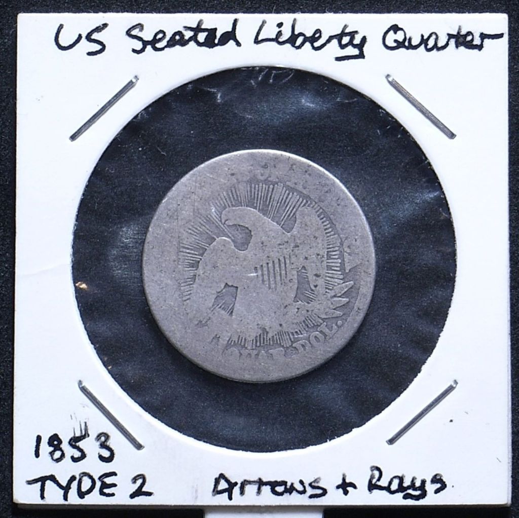 The previous type of this quarter had the eagle with a plain background. From 1854 up to the early 1890s they went on to produce another half dozen or so other types, but never did another ‘eagle with rays’.