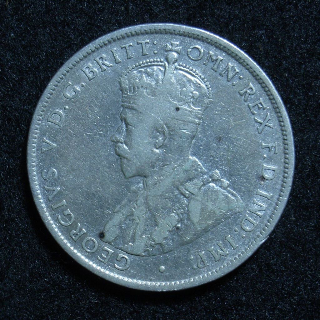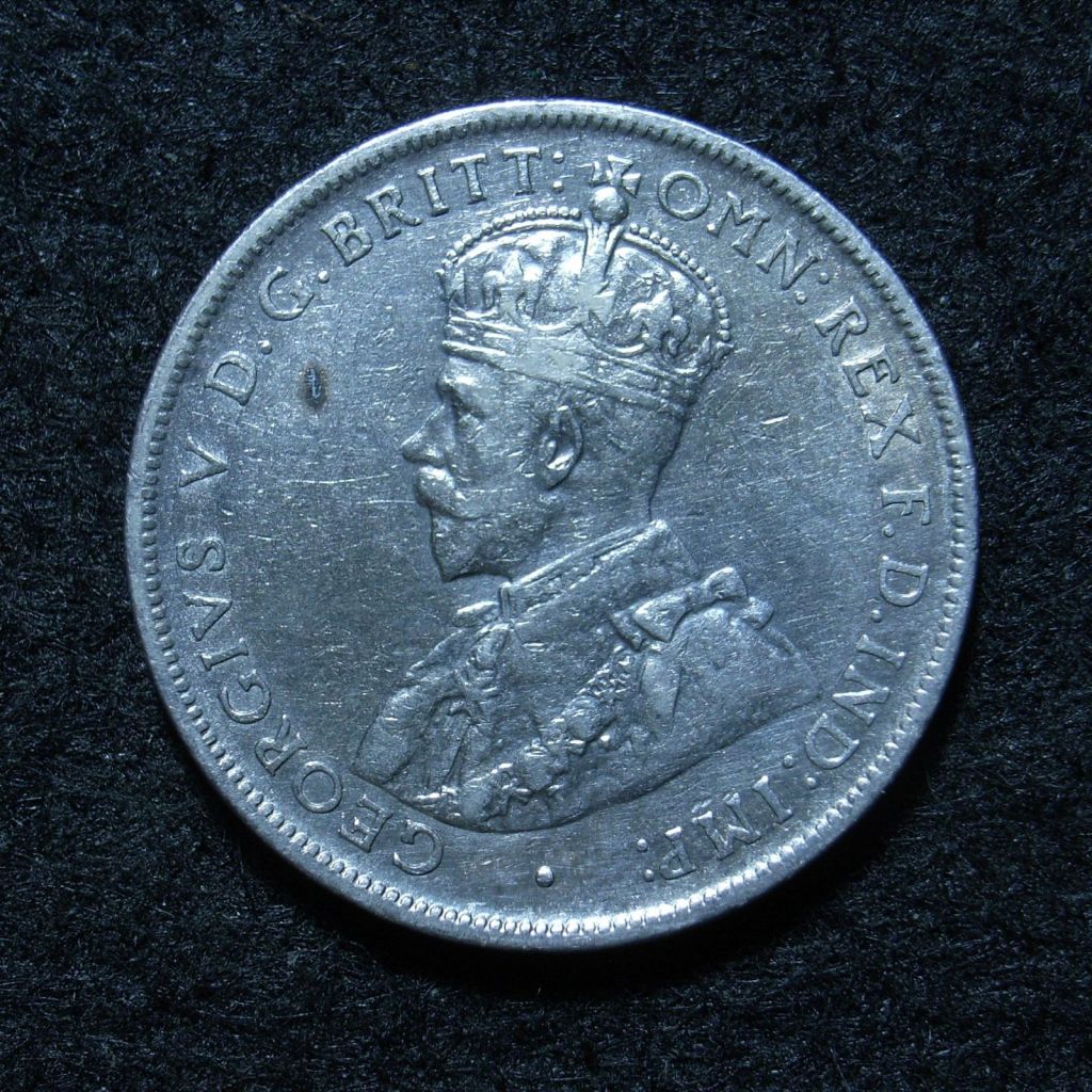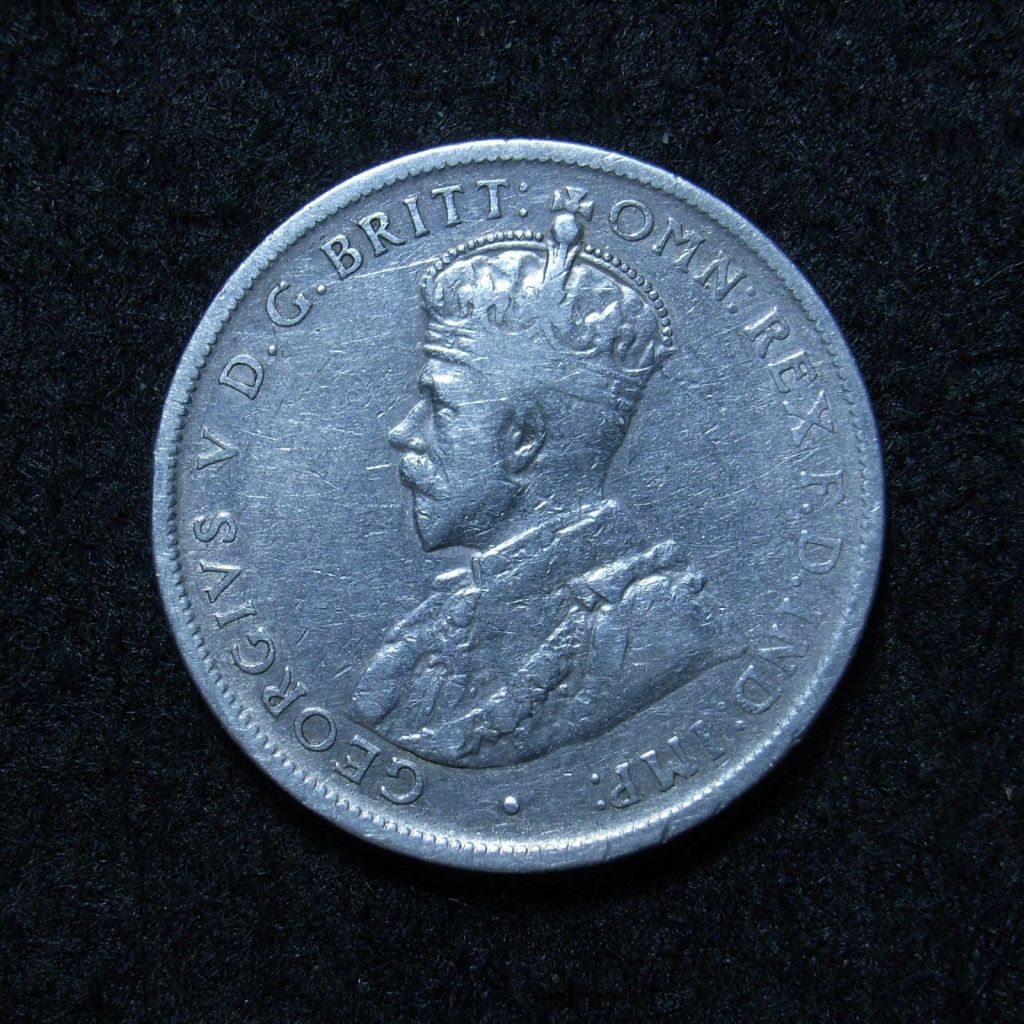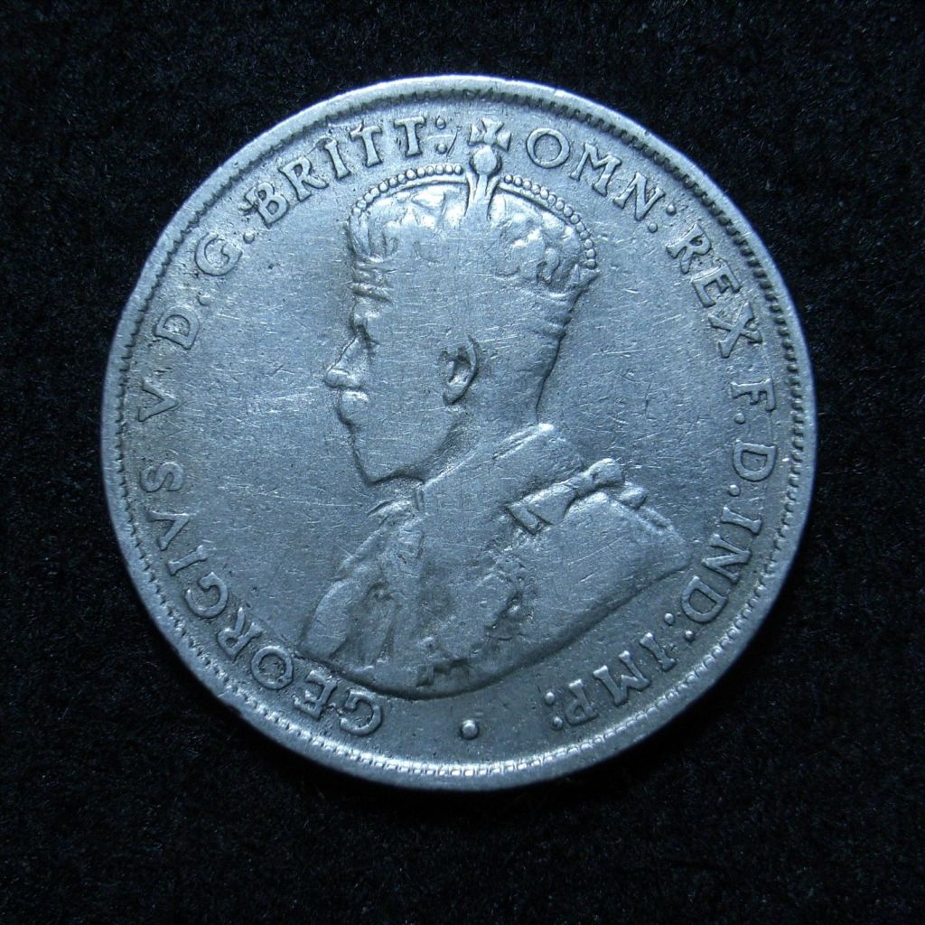 The basic design for the obverse throughout the period was a left facing portrait of King George V of Great Britain.