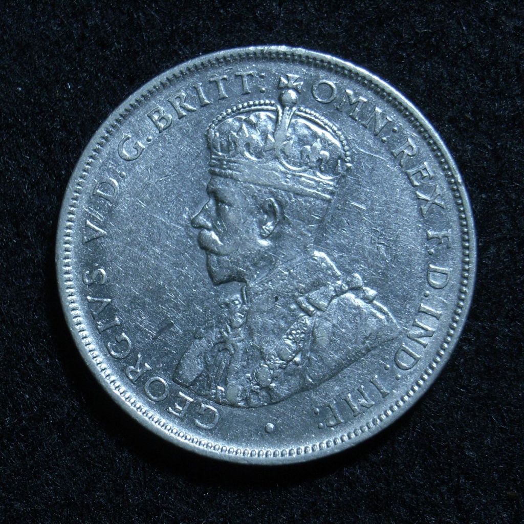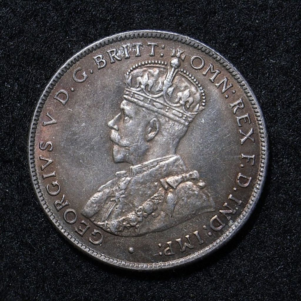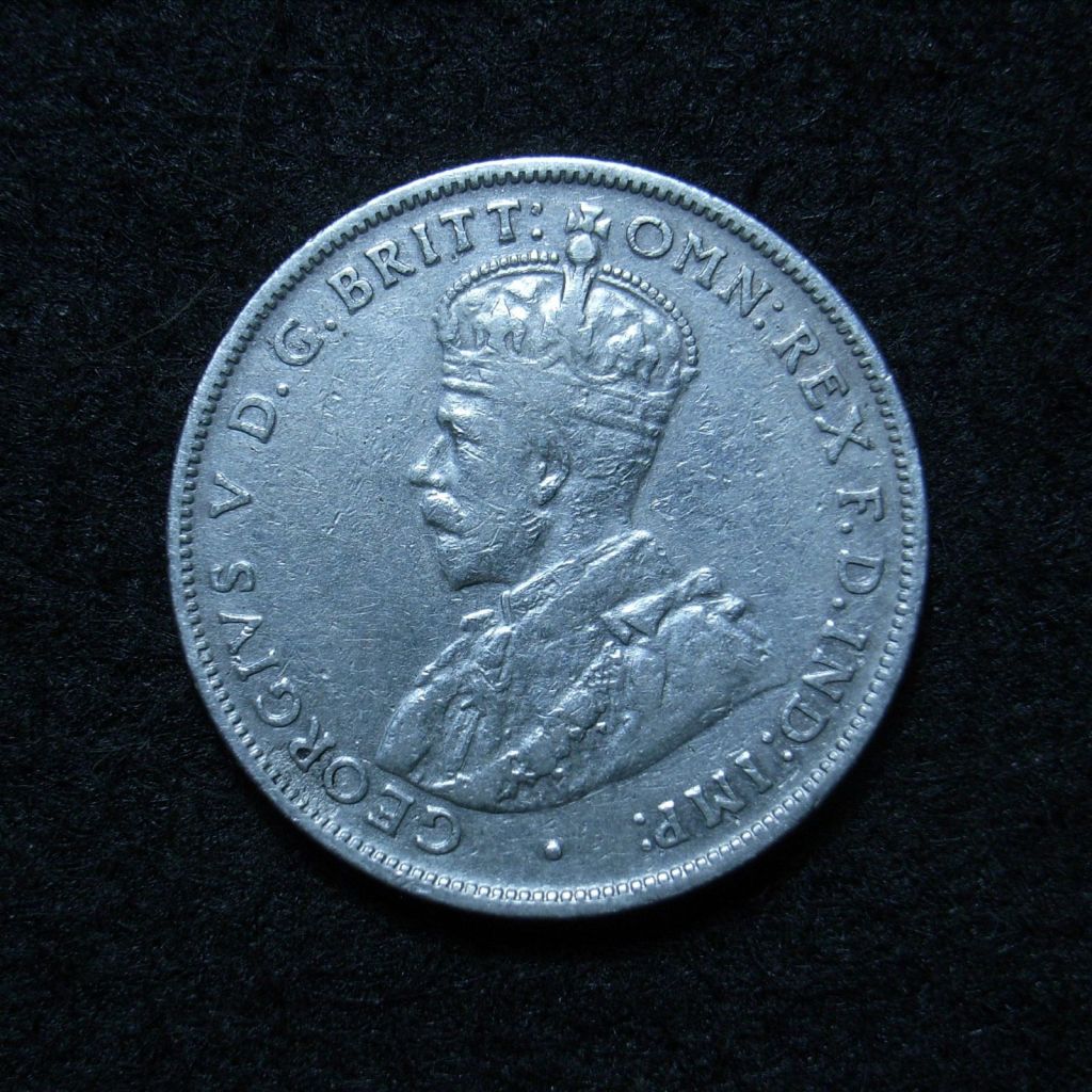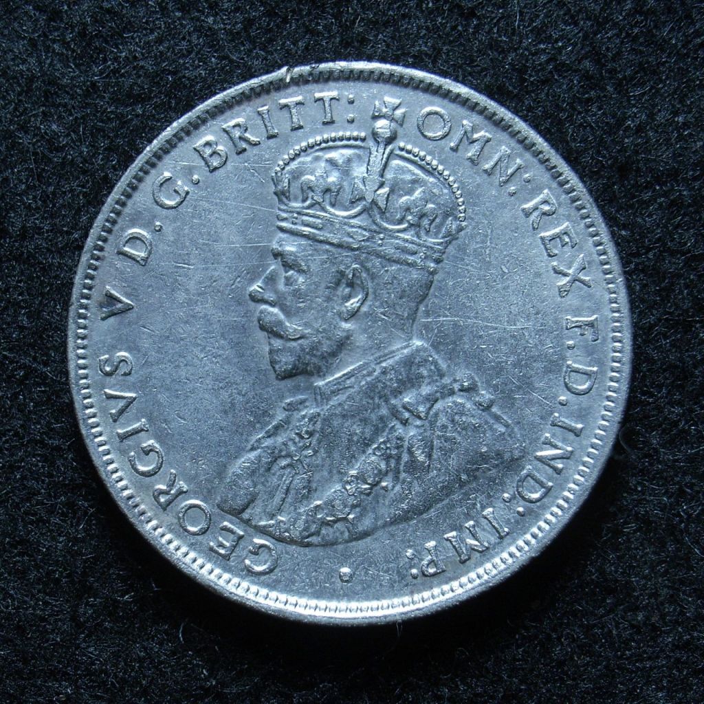 The basic design for the obverse throughout the period was a left facing portrait of King George V of Great Britain.