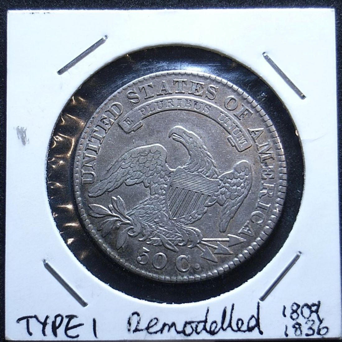 US silver Capped Bust Half Dollar of the type used in Early Australian currency.